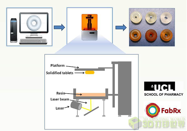 这项名为“口服药服定剂量释放光固化3D打印(Stereolithographic (SLA) 3D printing of oral modified-release dosage forms)”的研究展示了利用SLA 3D打印技术生产“载药型药物”的可能性和适用性,研究人员包括Jie Wang、Alvaro Goyanes、 Simon Gaisford和Abdul W. Basit。