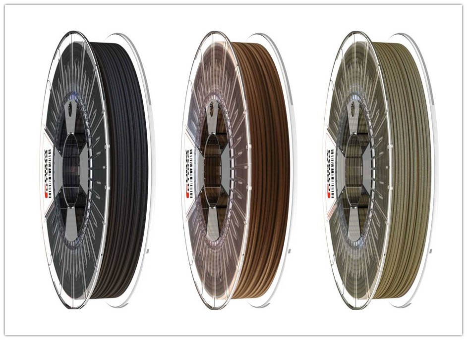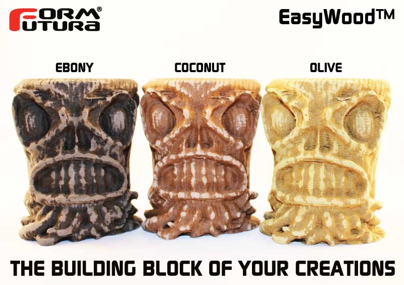 而且,他们的外观也很不错。“EasyWood™ Olive是一款棕绿色的木质线材,它可以用来3D打印具有类似自然苔藓覆盖外表的木质对象。它是用40%的木材颗粒在研磨后与经过改性后适于打印的粘性聚合物混合而成的。”FormFutura团队称,EasyWood™ Ebony具有完全相同的特性,除了外观有所不同之外——这是一种华丽的深棕色木质外观。