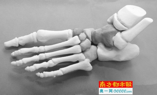 但工伤事故还经常出现断肢甚至断肢全部被绞碎的情况,这时3D打印技术就派上了用场。黄文华用3D打印出手掌的断截面,从患者的脚指头中截取复合皮瓣,用脚趾替代手指。“做了3例类似手术,一例用脚拇指替代手拇指,一例从双脚各截取两趾移植为手部指头,还有一例五个手指全部来自脚趾移植。”