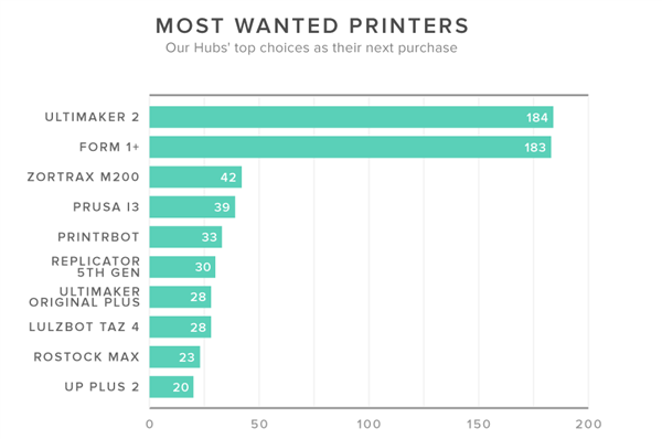 根据3D Hubs的数据,Ultimaker 2仅以一票的微弱优势胜出,但我们必须要补充的一点是,Ultimaker 2已经是3D Hubs平台上最常见的3D打印机之一,而大多数Form1+的用户都是新买家。