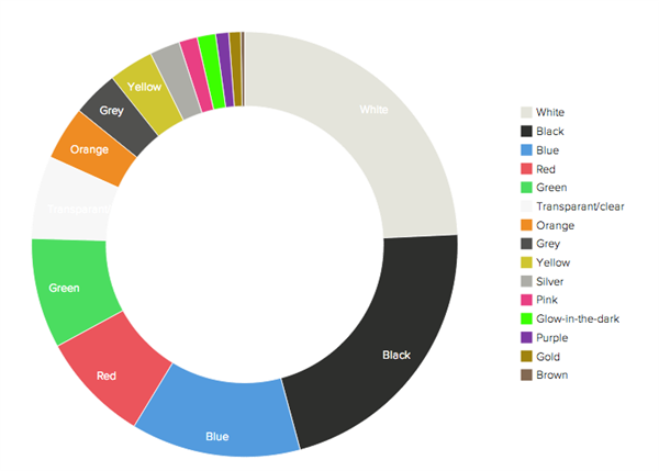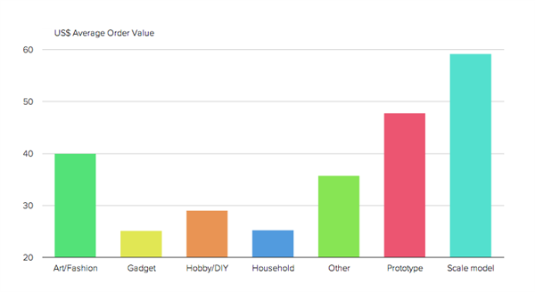 在3D Hubs平台上,人们3D打印最多的模型是比例模型,原型与艺术时尚类则紧随其后。在所有的3D打印订单中,人们选择最多的颜色为黑色、蓝色和红色。